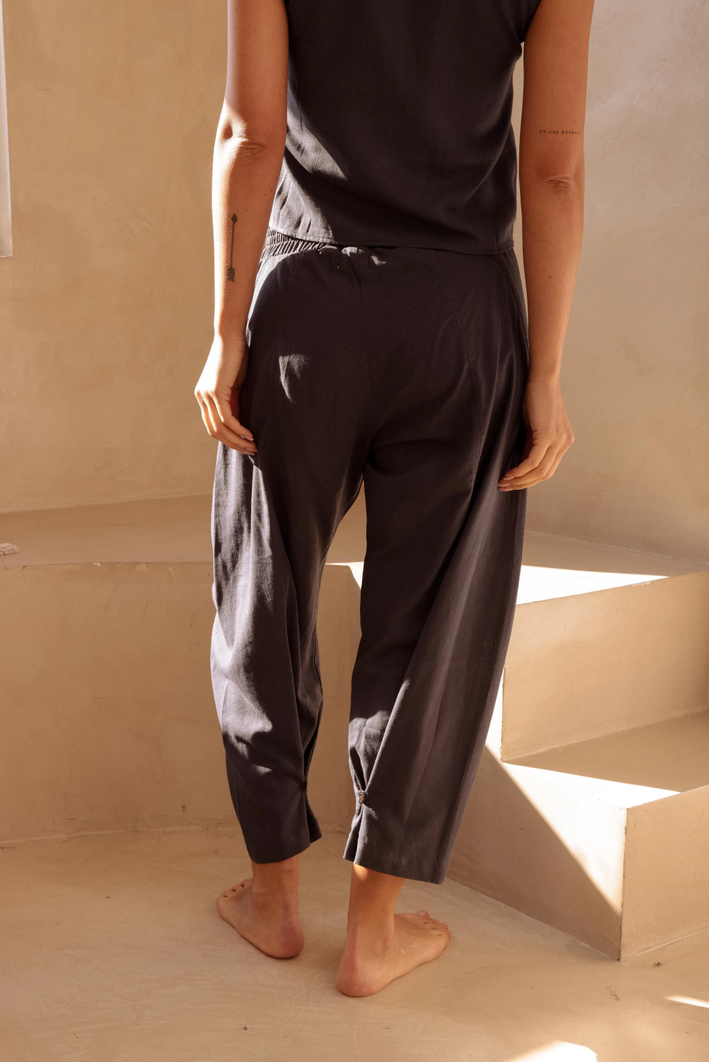 Pantalón amplio lleno de cortes que lo hacen único! Tiene bolsillos en el frente y botón en la botamanga para ajustarlo y darle un estilo “aladin”. Tiene elástico ancho en la cadera que no aprieta y que lo hace comodísimo. Es fresco, cómodo, canchero, diferente, versátil y podríamos serguir…